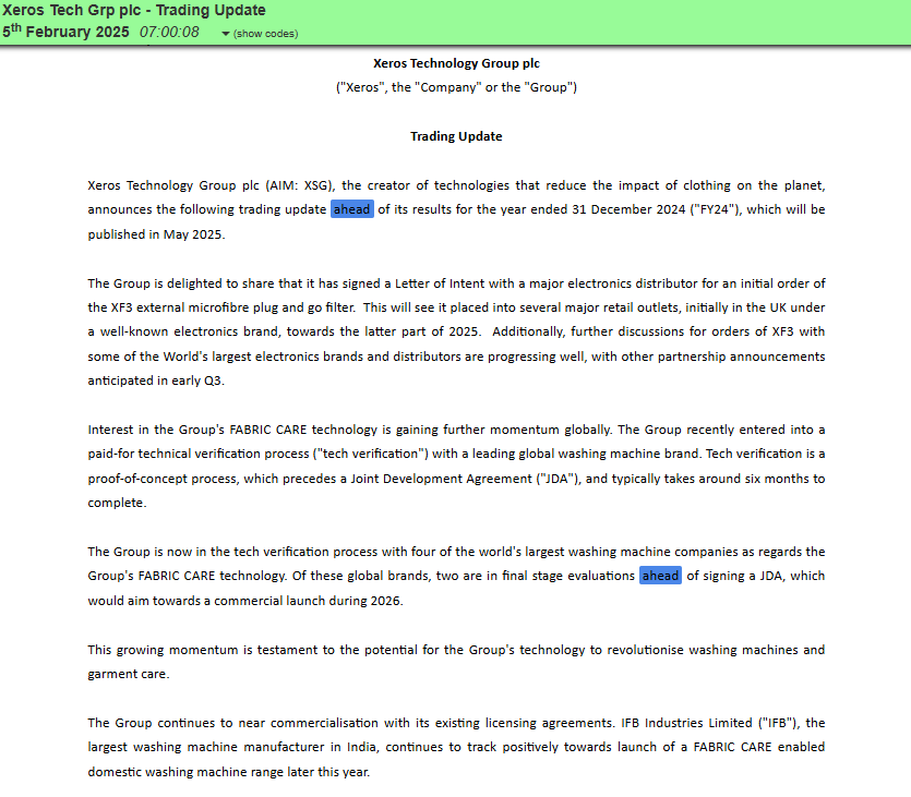 Net cash at 31 December 2024 was £2.8m. With our ongoing focus on operating cost discipline the Board continues to anticipate that this will be sufficient to take the Group to month on month cash flow break even during the course of this year. Cognisant of potential timing issues when working with large global organisations, the Board is taking a prudent view of its revenue expectations for FY25. Allowing for some delays and slippages within the existing pipeline, the Board expects to achieve revenue of approximately £2.5m in the current year, though this does not include the significant upside potential of additional revenue opportunities from the numerous discussions we currently have underway.