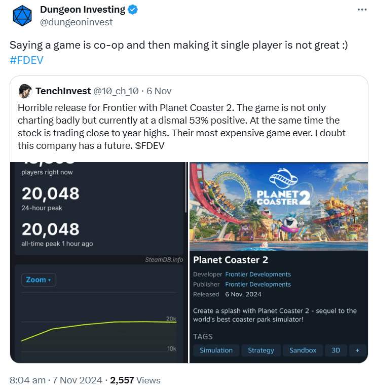 I’ve written about this stock before, and whilst I liked it, I talked about the risk of it being focused on only a handful of releases. That means any flop is going to do some serious damage to the share price.